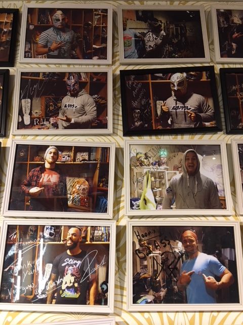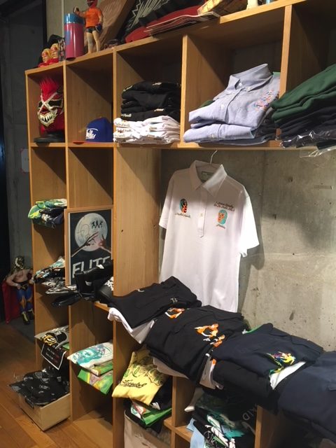 各団体とのコラボ商品があったり、レスラーがプロデュースした商品も置いてあったり。